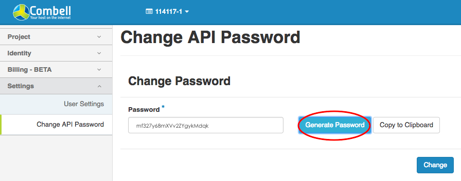 In order to generate an API Password for OpenStack please follow the steps bellow: