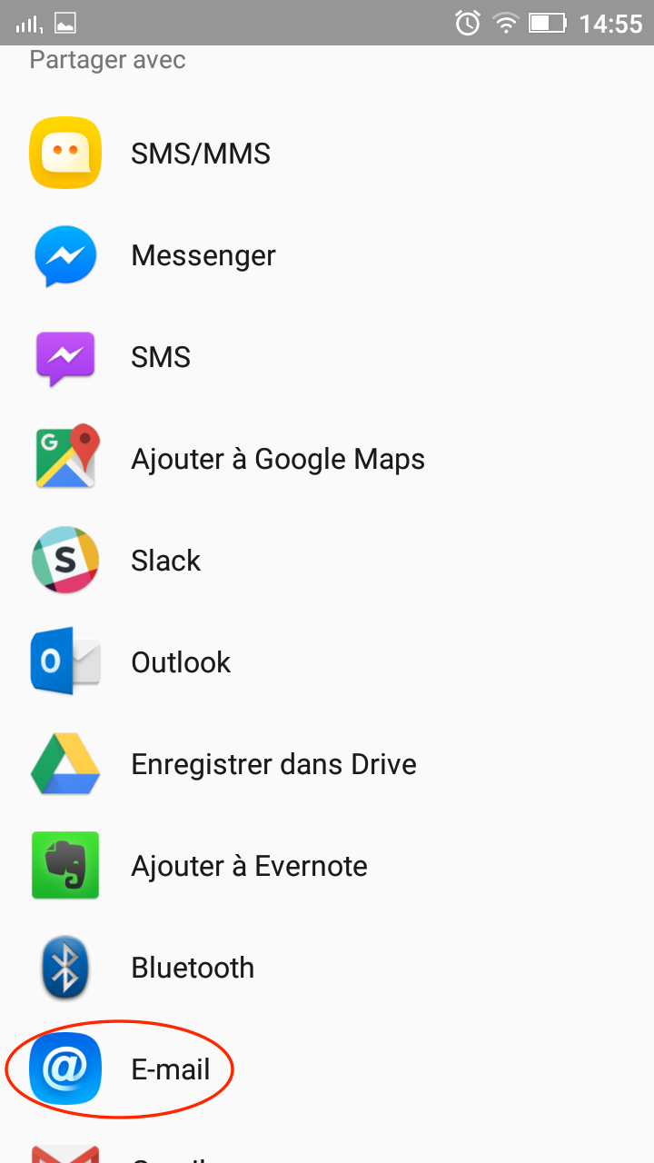 Pour réaliser une capture d’écran sur votre téléphone Android et l’envoyer via e-mail, veuillez suivre les instructions suivantes: