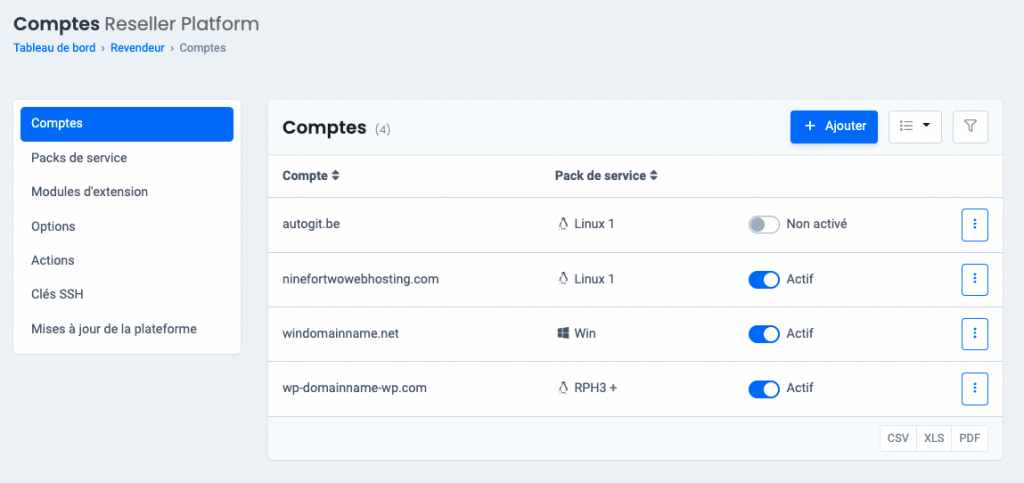 Remarque : Un compte qui est sur « non activé » sera quand même facturé !