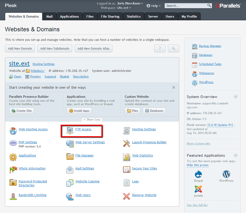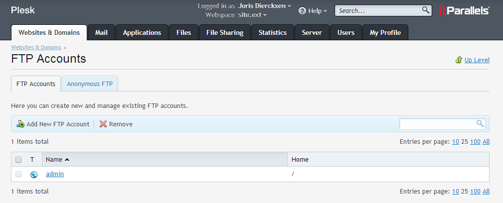 - Cliquez sur le compte FTP.