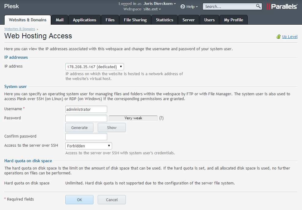 - Connectez-vous à votre panneau de contrôle Plesk.