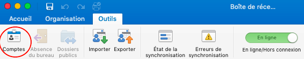 1. Allez dans « Outils » > « Comptes ».