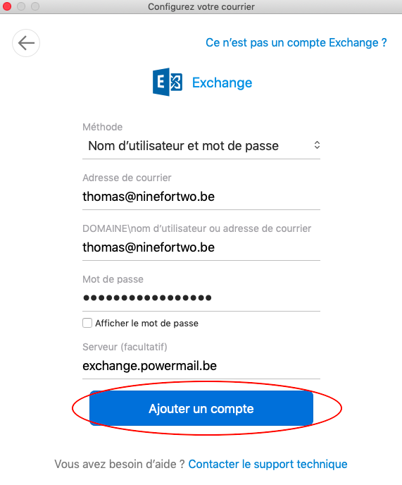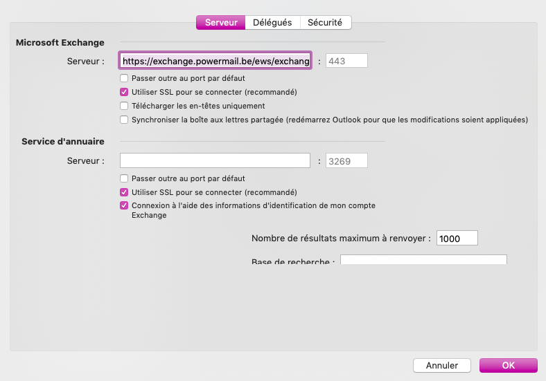 Configurez votre boîte mail Exchange dans Outlook pour Mac
