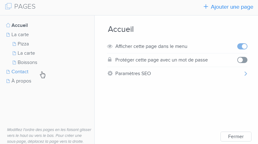 2. Cliquez sur la page à déplacer et glissez-la vers le haut ou vers le bas.