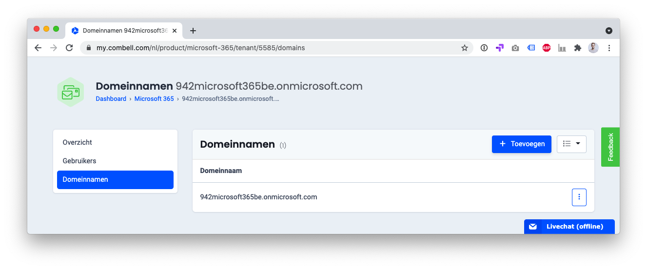 3. Bij domeinnamen klik je op de knop “+ Toevoegen”.