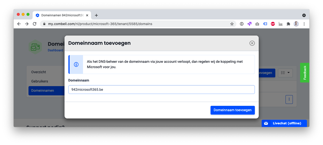 Om een domeinnaam toe te voegen, volg je deze stappen in het controlepaneel van $$BrandName$$.